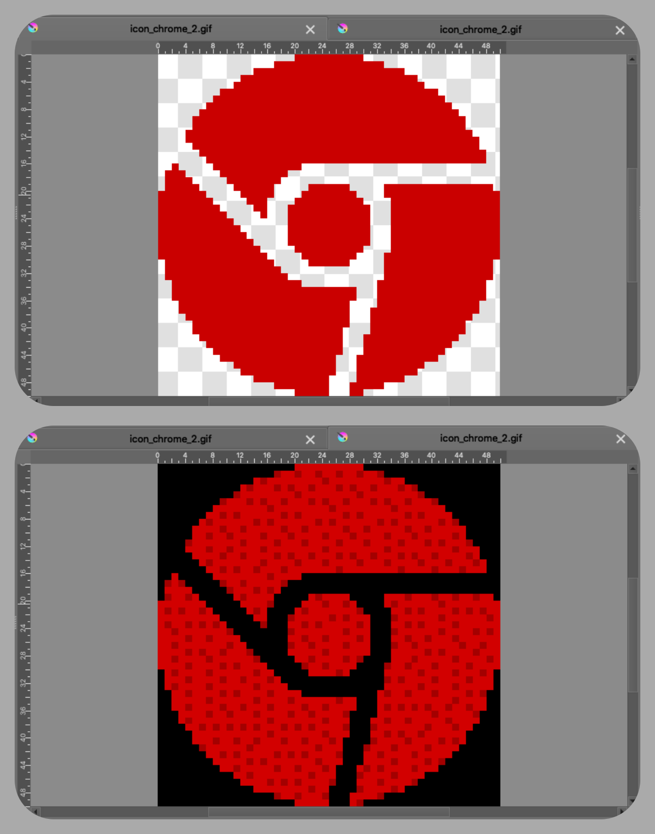 解法:所有的過程,都不要使用.gif 格式,改用.kra , 最後要變成 .gif 時,點 File – Import animation frames…