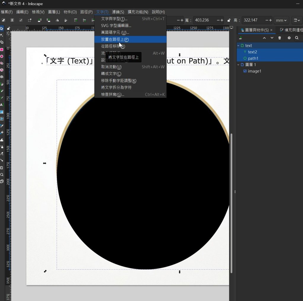 2. 在 Inkscape 中製作圓弧文字