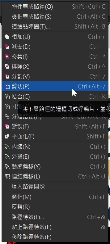 要修減形狀, 可以使用 “剪切”